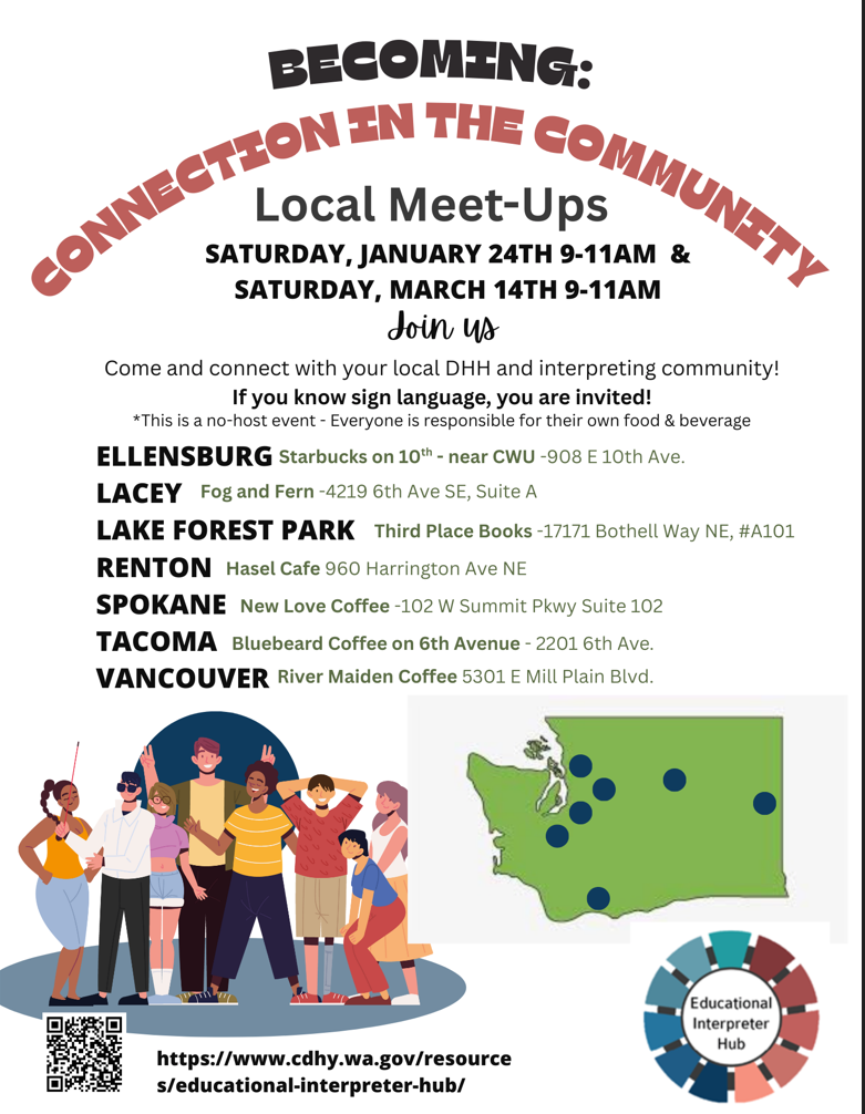 A community event for Deaf, Deafblind, HOH, CODA, interpreters & signing-friendly members!